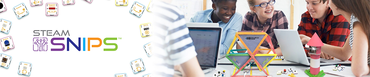 STEAM SNIPS™ are electronic building modules that can be combined in an infinite number of ways, creating all sorts of electronic inventions.